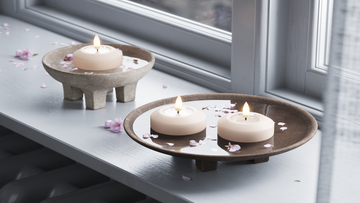 Plaukiojančios žvakės dedamos į dubenėlius ir indus su vandeniu. Tai suteikia paprastą atmosferą – tiek viduje, tiek išorėje.