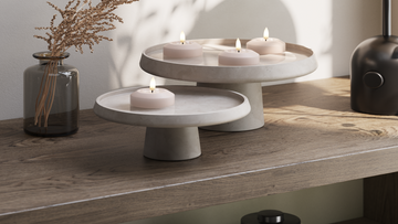 Norėdami sukurti ramų bendrą įspūdį, galite surinkti lemputes ant lėkštės ir keisti jų aukštį, išlaikant spalvas toje pačioje paletėje.