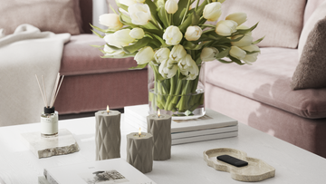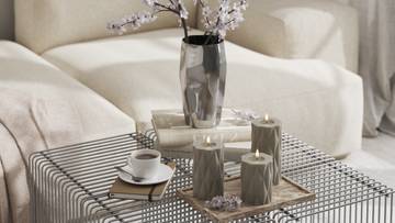 For et roligt helhedsindtryk kan du samle lysene på et fad og variere højderne, mens farverne holdes i samme palette.
