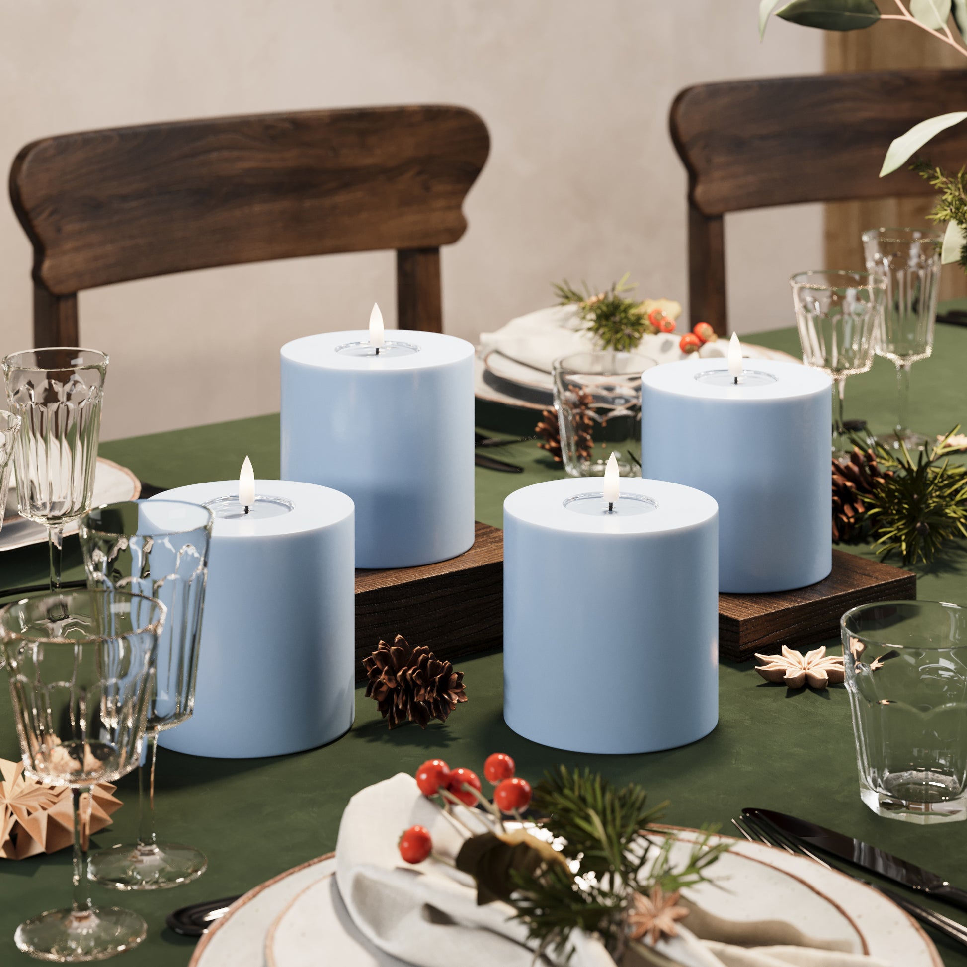 I denne pakke får du LED bloklys i farven Isblå i flere størrelser.