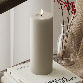 See elegantne LED -plokkvalgus sisse Liiva Pakub reaalse elu tõeline leegi efekt, mis on sama eluteelne kui tõeline küünal. Kõrgus 20 cm ja läbimõõduga 7,5 cm, on iga LED -plokkvalgus hoolikalt valmistatud küünlatest ja vaigust, mis on varustatud elutruu 3D leegiga ja ülaosas ainulaadse vaigukattega. See konkreetne kombinatsioon ei loo mitte ainult autentset tunnet, vaid annab ka eristatava "märja ilme", ​​mis jäljendas sulaküünlaid suurepäraselt.