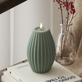 LED Ribbelkaarsen D 10 x H 15 cm Saliegroen